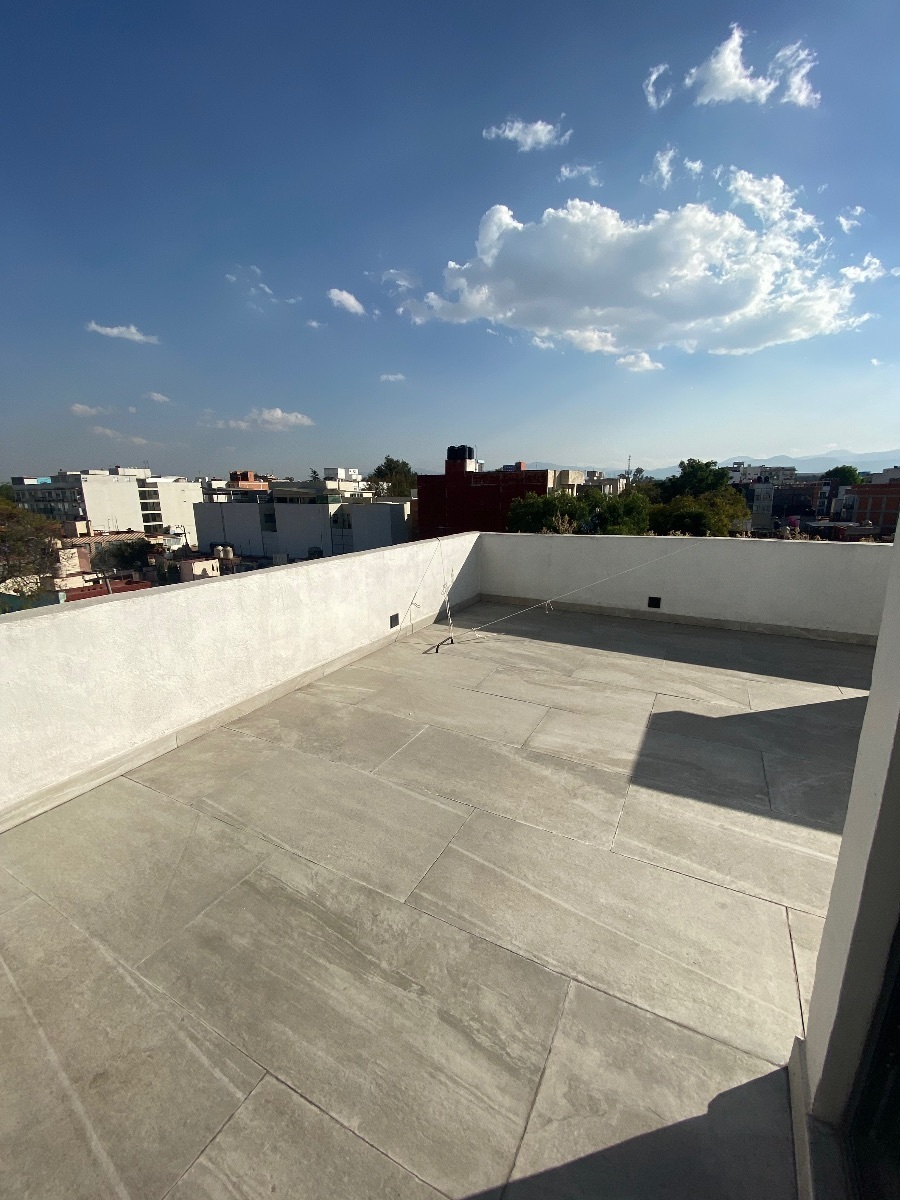 Se vende nuevo y último PH ubicado en la calle de republicas en la col. Portales Oriente. Se entrega amueblado y equipado. Se ubica en un desarrollo de 14 departamentos, el desarrollo tiene excelentes acabados. Cuenta con 77m2 habitables, mas 11.50m2 de balcón que rodea la estancia y las 2 recámaras haciéndolo muy acogedor e iluminado y 61.90 m2 de RG privado. Dando un total de 151m2. Además de contar con gimnasio, ludoteca y RG común, cuenta con seguridad 24/7 y CCTV. No pierdas oportunidad con este magnífico precio.
